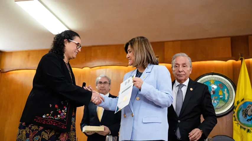Para finalizar, la vicepresidenta agradeció a todas y todos por su presencia y recibió un reconocimiento de parte de las autoridades donde reconocen su labor por 30 años en la USAC.