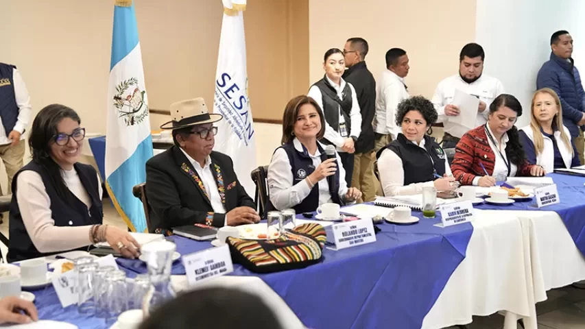 La reunión fue presidida por la vicepresidenta Karin Herrera, acompañada de la viceministra de hospitales Sandra Carballo, Klemen Gamboa, viceministra del viceministerio de Seguridad Alimentaria y Nutricional -VISAN- del Ministerio de Agricultura, Ganadería y Alimentación -MAGA-, Rolando López, Gobernador de San Marcos, y miembros del CODESAN personal de los ministerios de Agricultura Ganadería y Alimentación, Ministerio de Desarrollo y de Salud Pública y Asistencia Social.