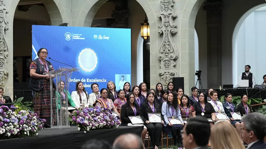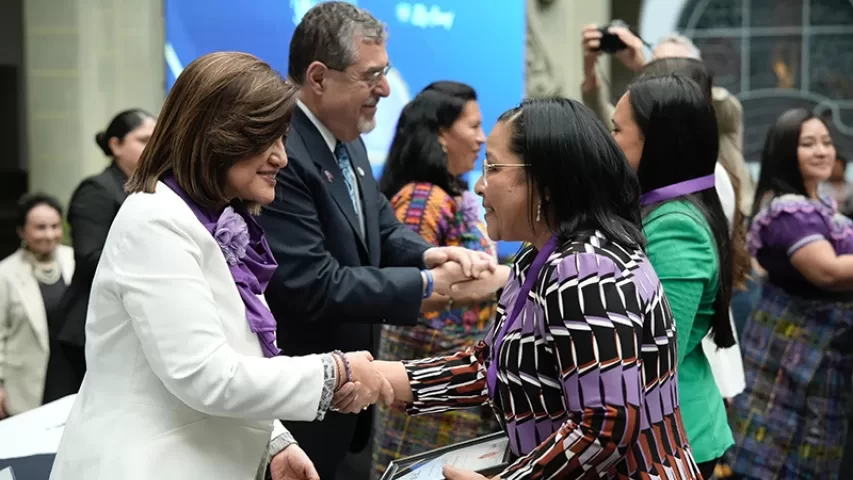 Además del colectivo de comadronas, los mandatarios Arévalo y Herrera y la ministra de Trabajo Miriam Roquel, reconocieron la labor de 25 mujeres profesionales a quiénes también hicieron entrega del galardón.