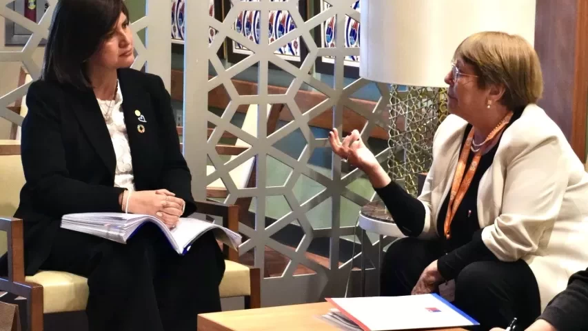La segunda reunión bilateral que sostuvo la vicemandataria Karin Herrera fue con la médica y expresidenta de Chile, Michelle Bachelet, abordando temas de retos y oportunidades para las mujeres en el ámbito profesional en la administración pública, violencia sexual, atención a niñez y mujeres, además el Plan Retorno al Hogar, el cual está siendo implementado para recibir a los guatemaltecos retornados.