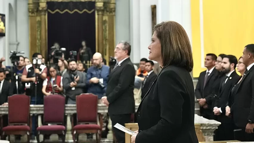 La Vicepresidenta Karin Herrera junto al Presidente Bernardo Arévalo participaron en una misa ofrecida al Papa Francisco, presidida por el arzobispo Gonzalo de Villa.
