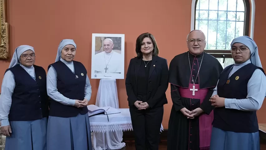 Con respeto y solemnidad, la vicepresidenta de la República Karin Herrera visitó la Misión Diplomática de la Nunciatura Apostólica para firmar y enviar un mensaje póstumo en el Libro de condolencias por el fallecimiento del Papa Francisco.