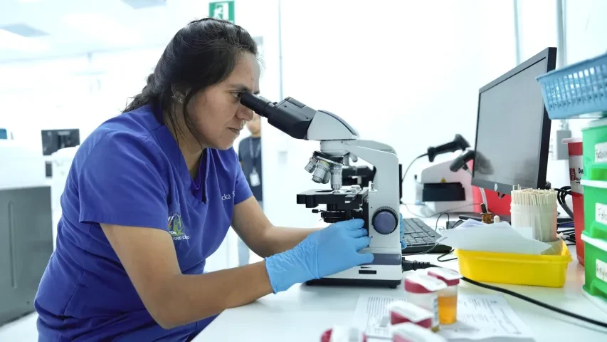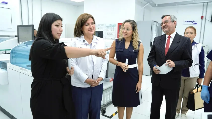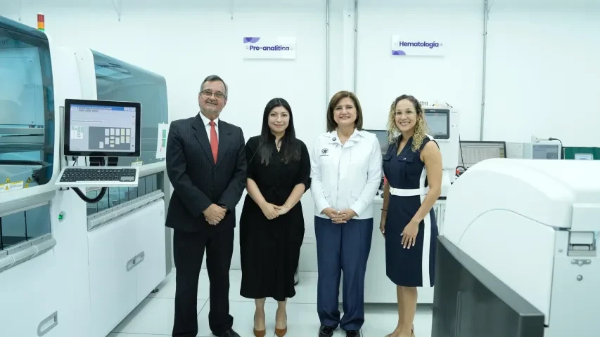 La gira contó con el acompañamiento y cálida bienvenida del doctor Ángel Alfredo Longo, director del Hospital de San Marcos; la doctora Kharis M. Rebolló, Directora Regional de Roche y Beatriz Bautista, jefe del Laboratorio Clínico de este hospital.