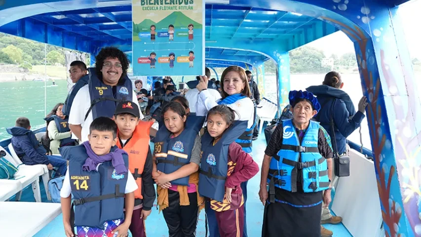 La Presidenta en Funciones indicó que la "Escuela Flotante Atitlán" es una iniciativa educativa creativa que funciona sobre el agua, utilizando una metodología lúdica y experimental para enseñar sobre la biodiversidad y las fuentes de contaminación.