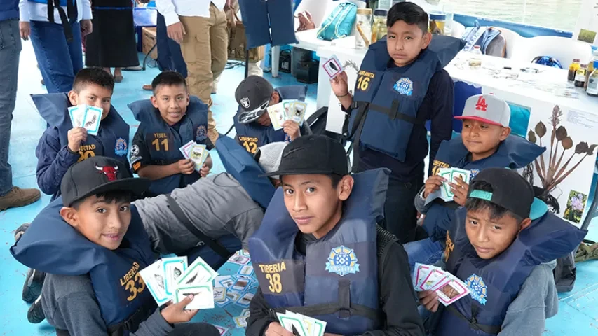 Los niños y niñas presentes ya habían recibido la fase 1, referente a educación ambiental y ahora avanzan a la fase 2, la cual tiene como objetivo educar para proteger el lago y crear conciencia desde la ciencia para formar a las y los defensores del lago.
