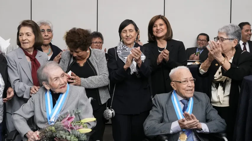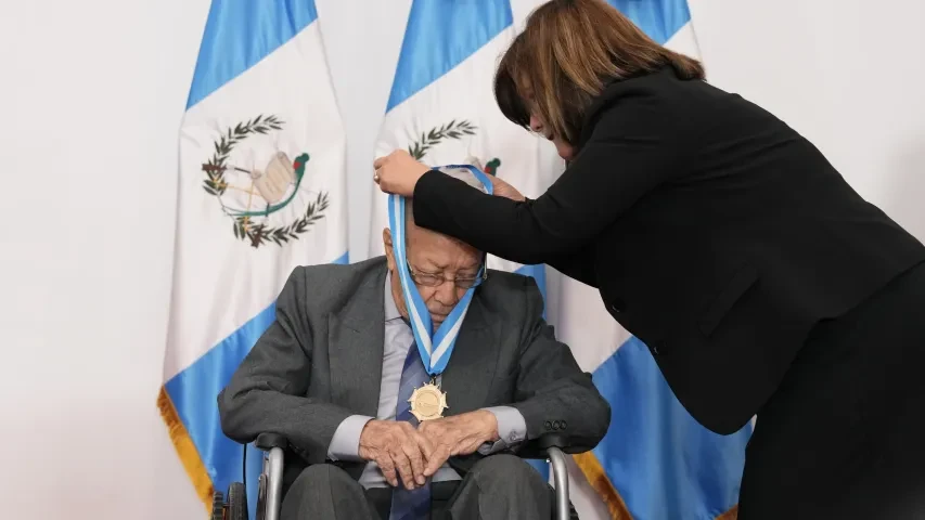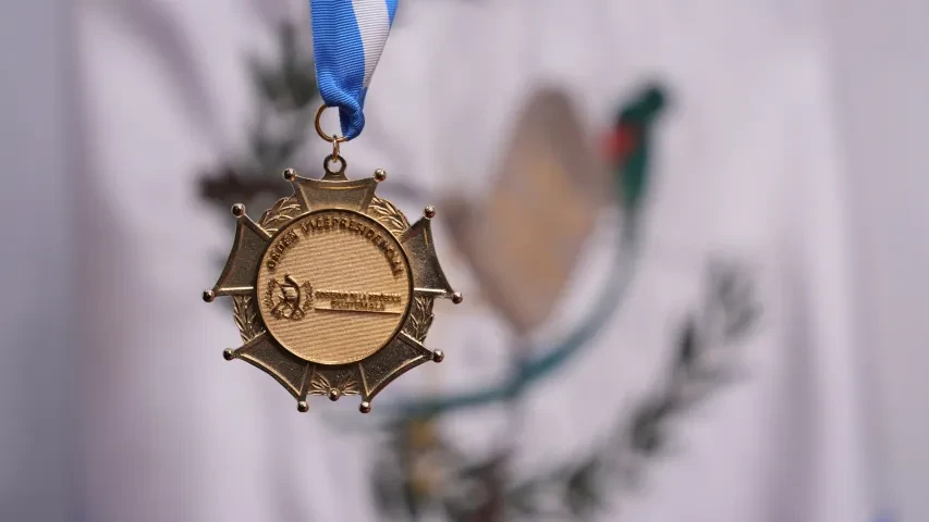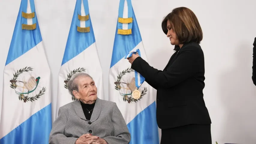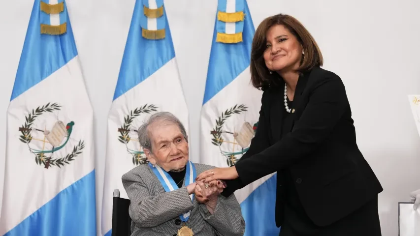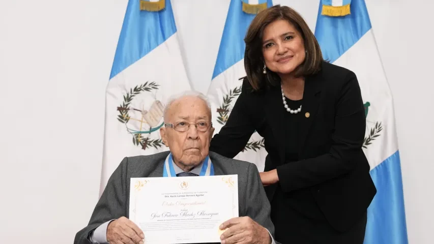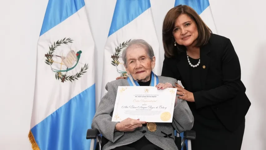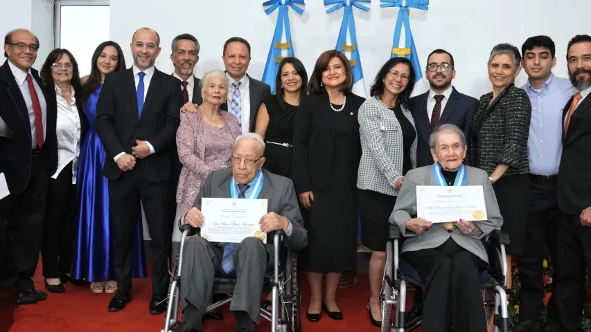 Los maestros Alba Elena Aragón Reyes de Ceberg y José Fidencio Méndez Marroquín recibieron la Orden Vicepresidencial de manos de la vicepresidenta de Guatemala, Dra. Karin Herrera, por sus invaluables contribuciones a la educación pública nacional.