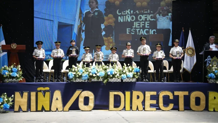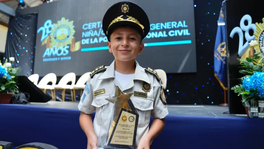La Vicepresidenta Dra. Karin Herrera entregó el galardón al Niño Director PNC 2025 a Denzel Portillo, originario de Zacapa, evento que fortalece el acercamiento con la población, así como el liderazgo y capacidades intelectuales de las y los menores.