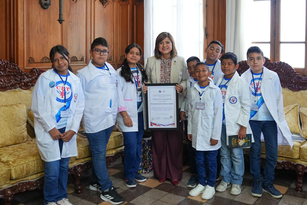 En el marco del Día del Niño, la vicepresidenta de la República, Dra. Karin Herrera, recibió con entusiasmo al Club de Ciencias “Ciencia y Paciencia”, del Centro de Estimulación Temprana de Mazatenango, liderado por la maestra Norma Navarro.
